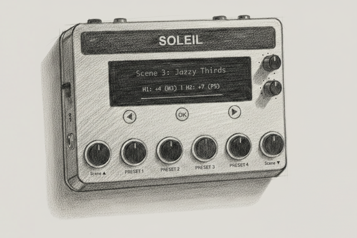 Highly customizable three part harmony in pedal or plugin form factor. You create scenes of preset harmonies and can easily cycle through them with midi, or your feet.